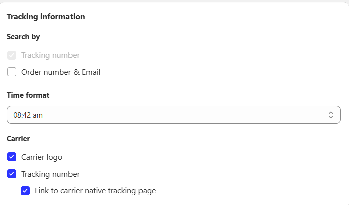 - Custom CSS & HTML: Add advanced styling or layouts to fully align the tracking page with your brand.