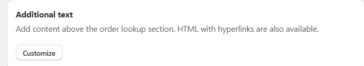 Add a custom message above the order lookup section. Supports plain text and HTML (including hyperlinks).